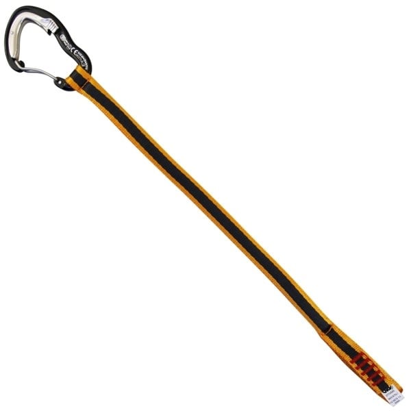 - un mousqueton Ergo Wire modifié, équipé de système ingénieux tenant le doigt ouvert jusqu’à quand il n’est pas en contact avec le piton à expansion ; le mécanisme relâche alors le doigt et le mousqueton se ferme automatiquement. Le mécanisme empêche l’ouverture accidentelle du doigt lorsqu’il est sous charge.