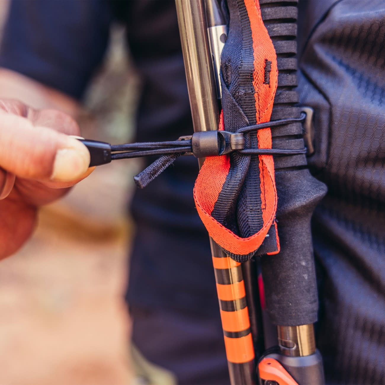 - Trekking pole system with adjustable bungee attachment and bottom loops