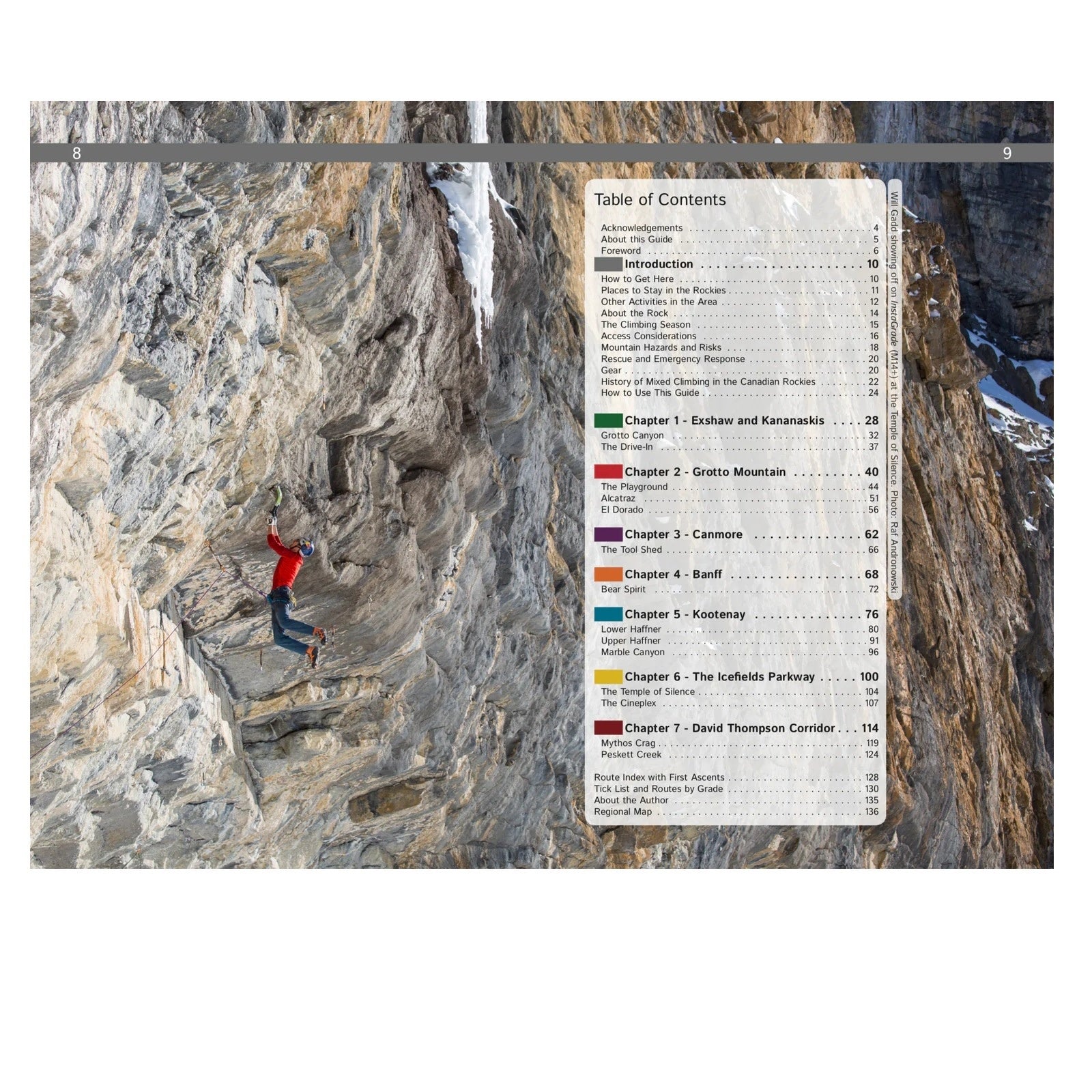 This guide provides information to 14 different crags, from the classic Haffner Creek, Bear Spirit and Grotto Canyon through to areas never published in a print guidebook such as Mythos Crag or the Temple of Silence. With over 200 routes listed, there are options for every type of climber, ranging from entry-level WI3s and M4s all the way to massive prolonged masterpieces like Will Gadd’s InstaGrade (clocking in at a whopping M14+, the hardest so far in the range).